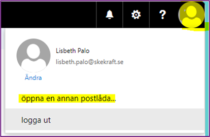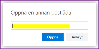 Klicka på huvud-ikonen och välj ”öppna en annan postlåda”. Då kan du fylla i mejladressen till de postlådor som du har behörighet till: