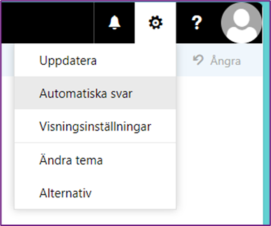 Klicka på kugghjulet och välj ”Automatiska svar”: