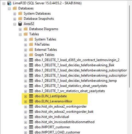 Tabeller: [dbo].[ELIN_LastUpdate] & [dbo].[ELIN_Leveransvillkor]