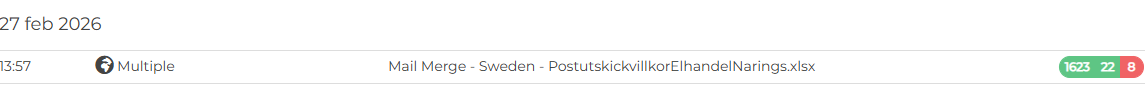 Mejlutskick gjordes via LIME Newsletter med importerade Excelfiler (ingen logg i LIME).
