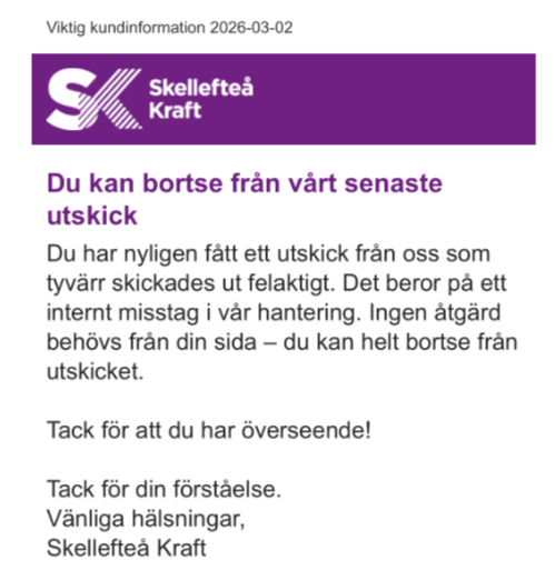 27 februari. Utskick via Wemail (kunder utan e-postadress)