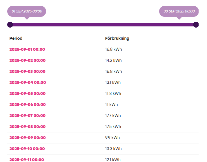 Rapport tillbaka. Vi tog tidigare bort Aidon-rapporten på Mina sidor. Den är nu tillbaka med nytt namn, "Timvärden från elnmätaren (preliminära). så den visar timvärden. Det är elnät som vill att den ska finnas " Vi behöver en rapport med mer högupplöst data för månadsavräknade i olika sammanhang. I timmar så är siffrorna på timenergierna samma som effekt, och elnäts effekttaxa kommer också vara baserad på timmar. Från mars kommer vi nog ha dygnsavräkning på i princip allt, men från början kommer det bara vara i denna rapport som det finns historik bakåt. Så, den kommer vara bra att referera vissa kunder till ett tag framöver."