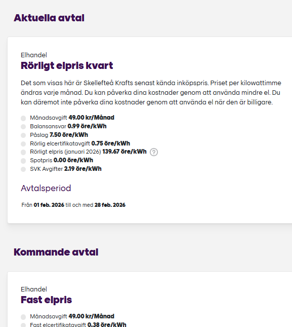 Har du ett rörligt avtal utan timavtal faktureras du istället efter Skellefteå Krafts inköpspris.