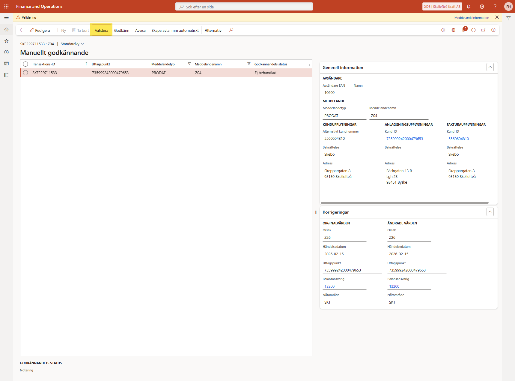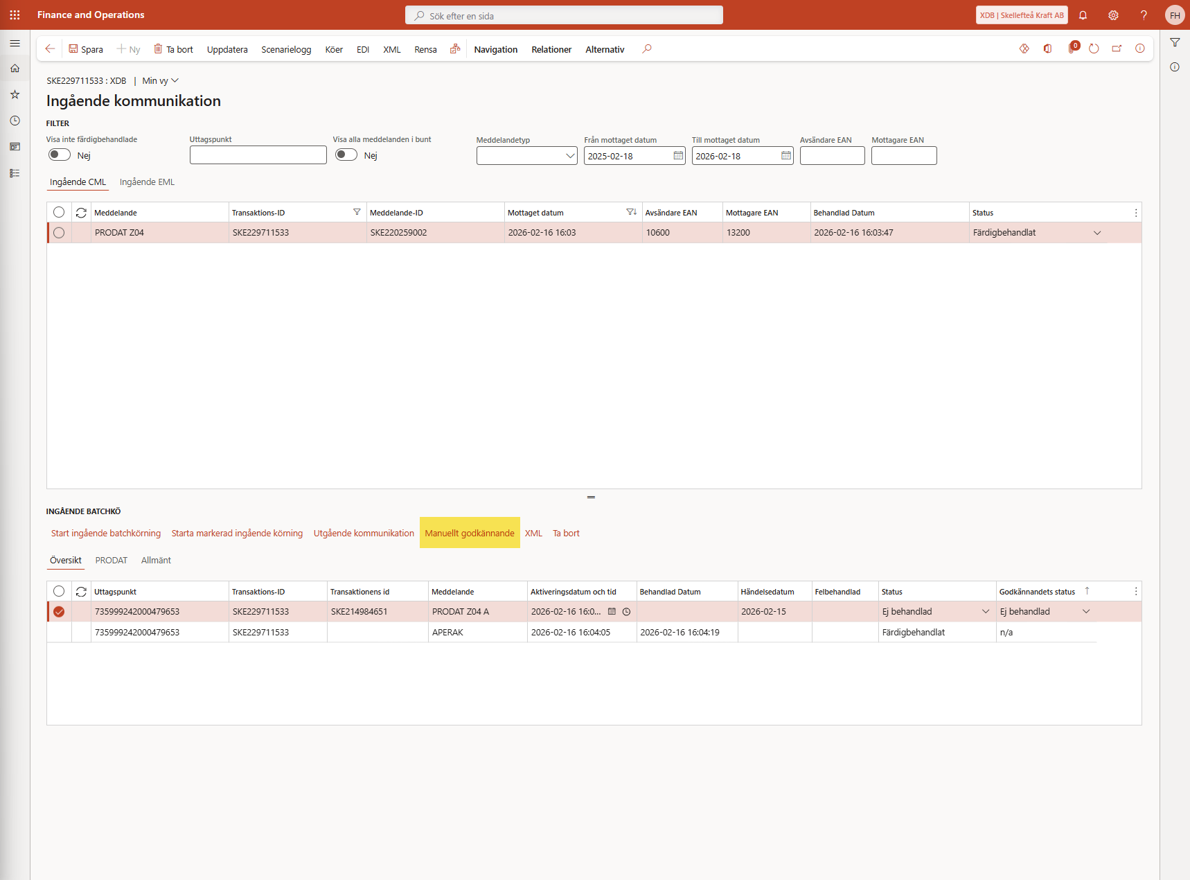 När rätt rad ligger överst och är markerad så klickar PA på Manuellt godkännande: